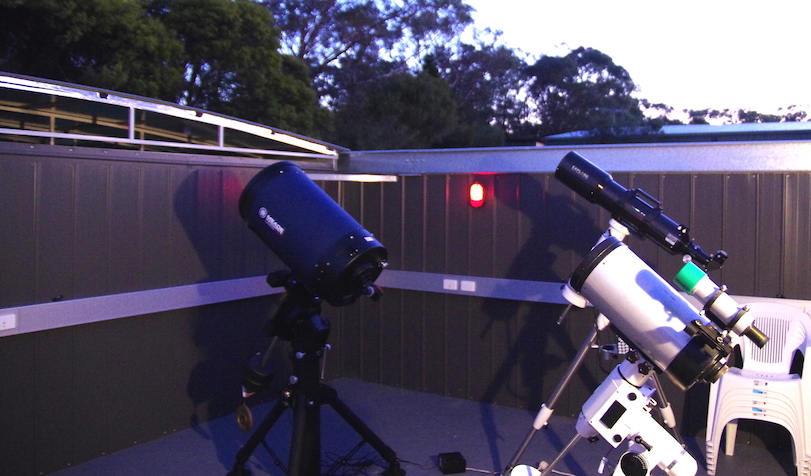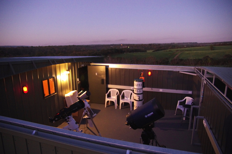 The building is a roll-off-roof design providing a large view of the sky for multiple telescopes. This enables us to leave the telescopes setup and aligned ready for use at any time with minimal fuss. The society has 3 'goto' telescopes and 1 motor assisted mount configured at the moment.