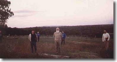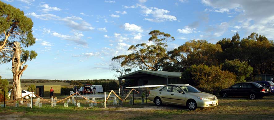 By 1999, the grass was down and two slabs were laid as viewing platforms. The old ASF caravan (visible in first image) found a new home as a storage shed, and working bees were arranged to develop the site. The Peter Norman 12" reflector was brought out at this particular work day so a refurbished mirror could be installed.